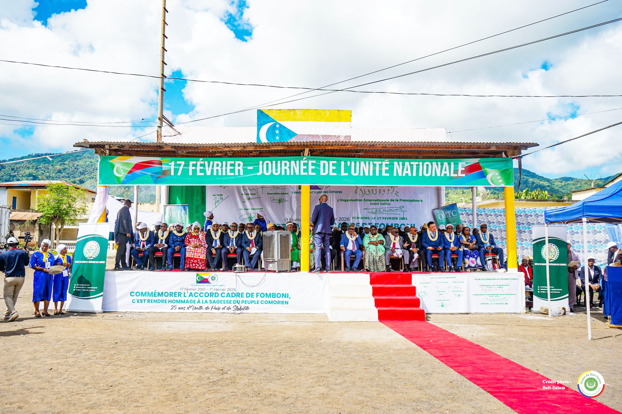 En prévision de la célébration du 25e anniversaire de l’Accord-cadre du 17 février 2001, les techniciens, les communicants de Beit-Salam et du secrétariat général du gouvernement, ainsi que les officiels ont commencé à affluer dans l’île de Mwali dès le week-end précédent. Le chef de l’État, Azali Assoumani, qui a tenu à ce que le gouvernement commémore cette date cette année, est arrivé la veille de l’événement. Le 16 février, le nombre d’habitants de l’île de Mwali avait soudainement fait un bond en avant et il n’y avait plus de place dans les hôtels.